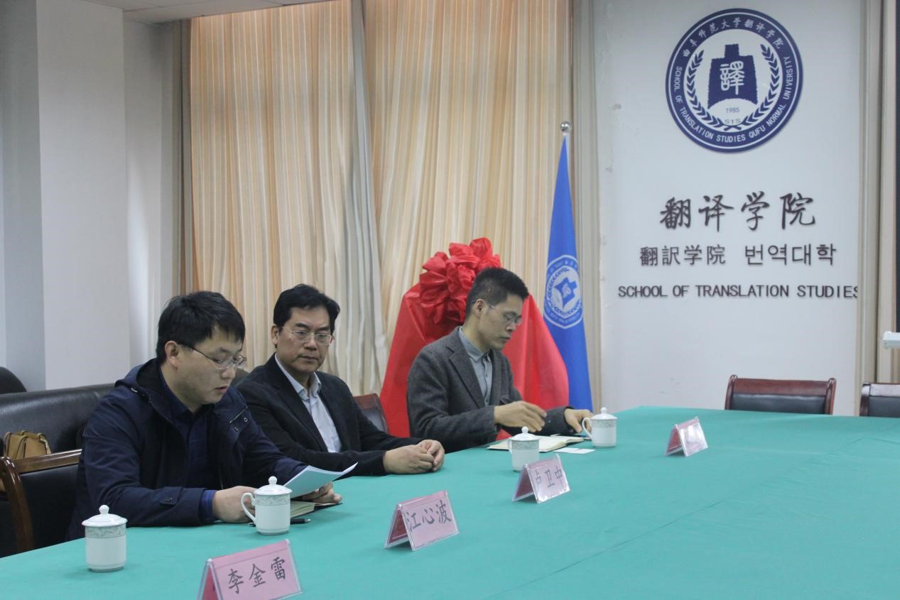 会议伊始,卢卫中院长与北京译点科技有限公司总经理江心波分别发表致辞,介绍了校企双方的基本情况以及双方在实习管理、翻译技术、课程共建、学术研究等方面合作的主要内容。接着,双方正式签署合作协议,李金雷书记和江心波总经理为教学实习基地揭牌。