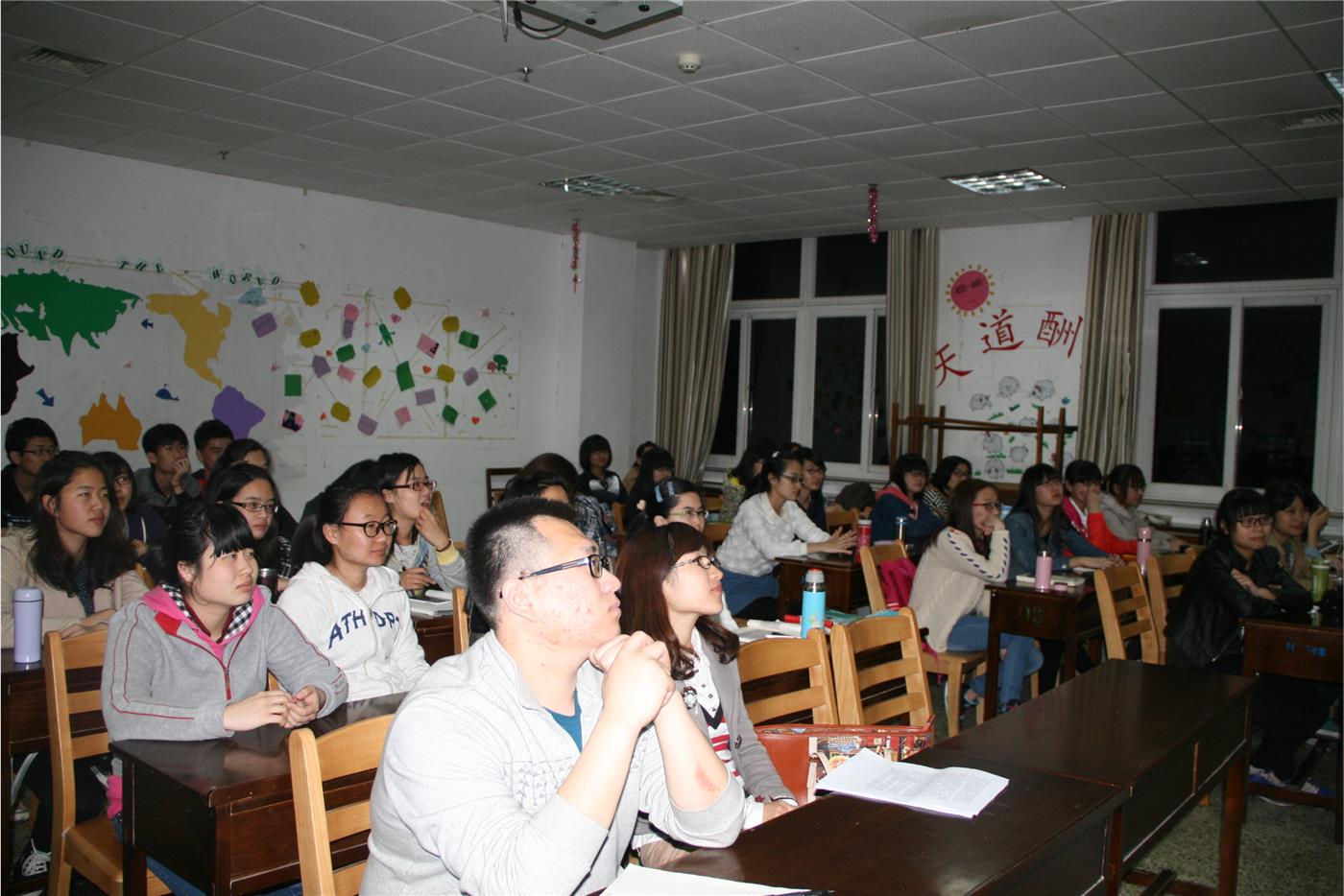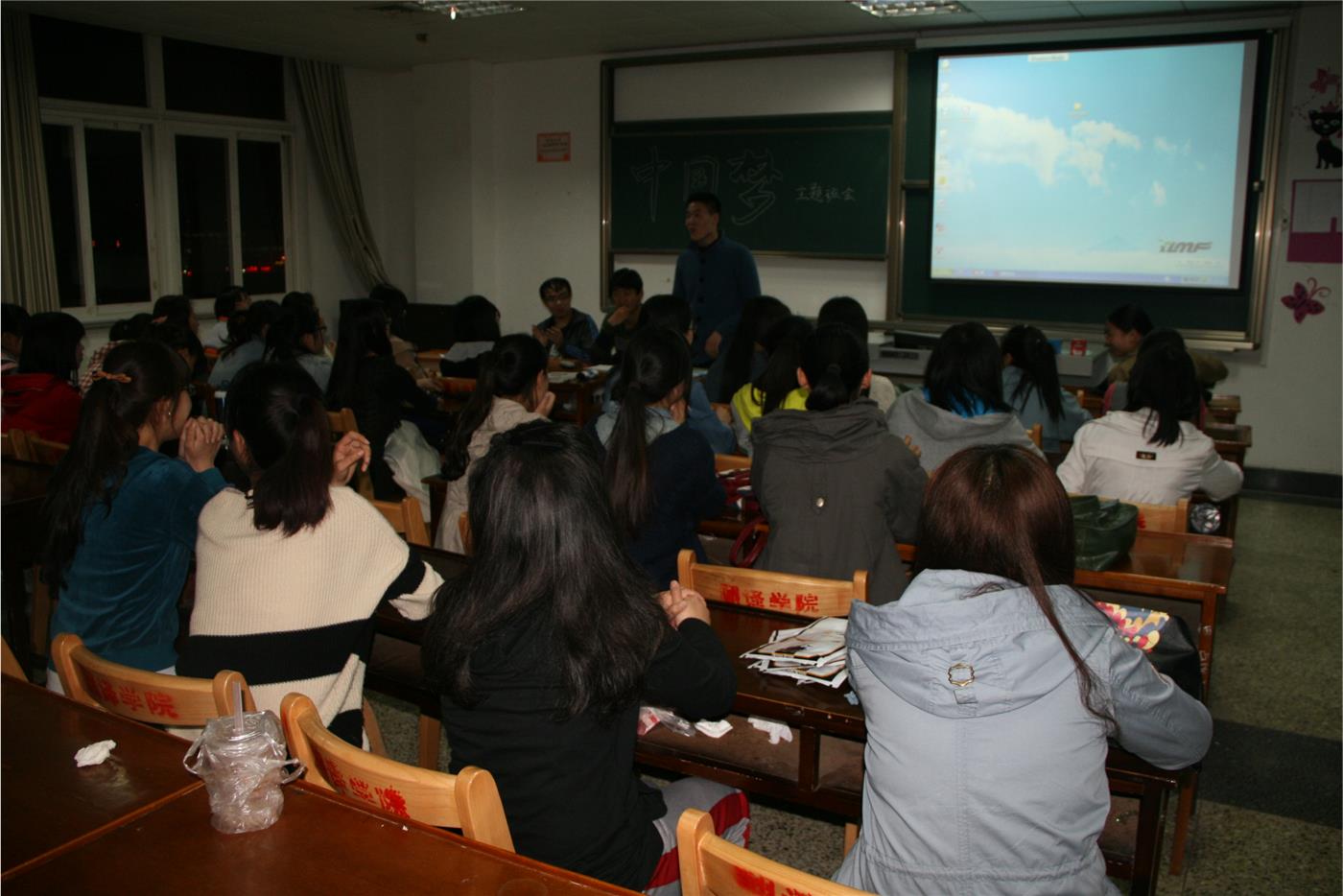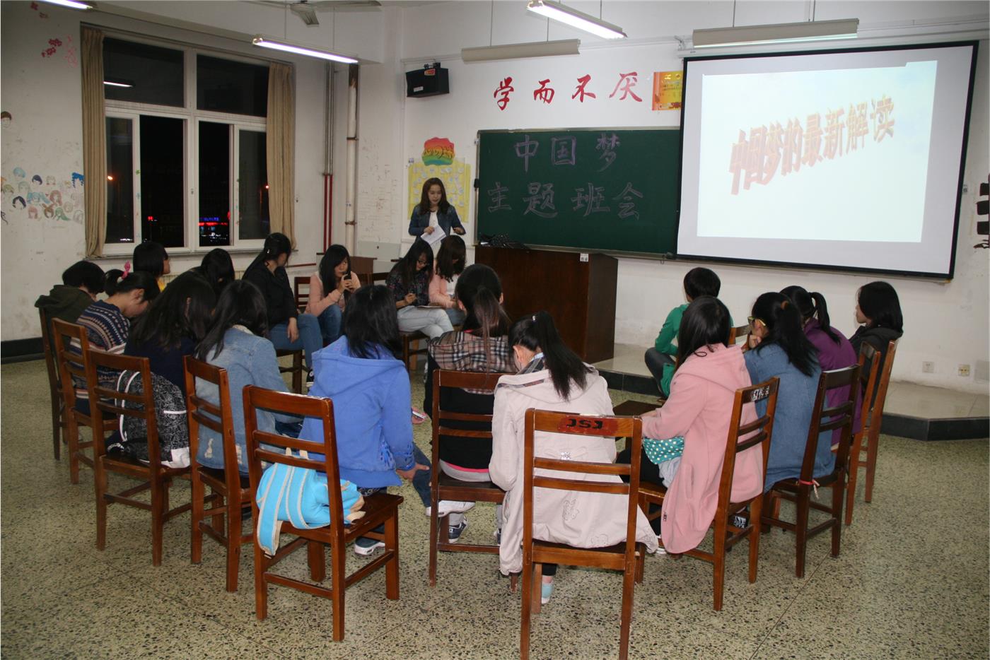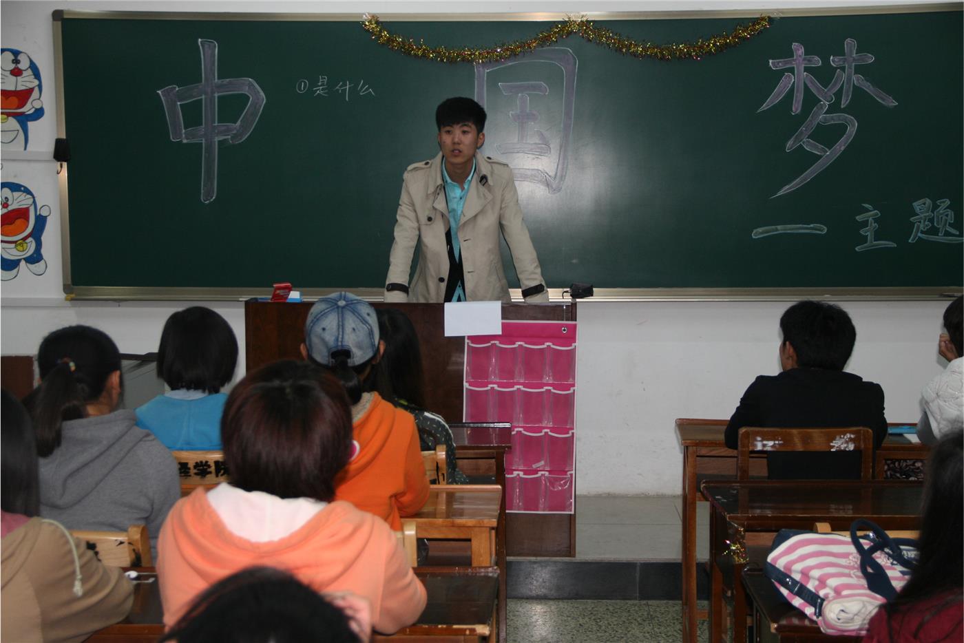 学生党支部、团总支联合在班级内部组织开展了以“中国梦”为主题的活动。 2014年4月18日晚7时,2013级“中国梦”主题班会在各班教室拉开帷幕。党员黄绪展、李新、翟福宝、栾亚琼等前来为大一的同学们诠释中国梦的内涵并为同学们答疑解惑。