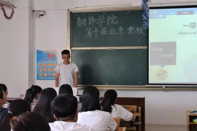 课程伊始,学生党员李晓晴首先为同学们详细介绍了入党流程和本科生党支部的基本情况与具体工作,着重强调了入党的三个关键点。接着,学生党员郝晓炜从实施背景、具体内容、重大意义和困难以及措施四个方面为大家解读了“一带一路”。随后,学生党员谭丽晨由电视剧《人民的名义》引入,通过短片向大家展示了“不忘初心,两学一做”的必要性。最后她向大家介绍了党的基本知识,其中包括:党的性质、行动指南、基本路线、入党誓词、条件以及党的组织和纪律。学生党员们的精彩讲解使全体学员受益匪浅。至此,本次活动在热烈的掌声中圆满结束。
