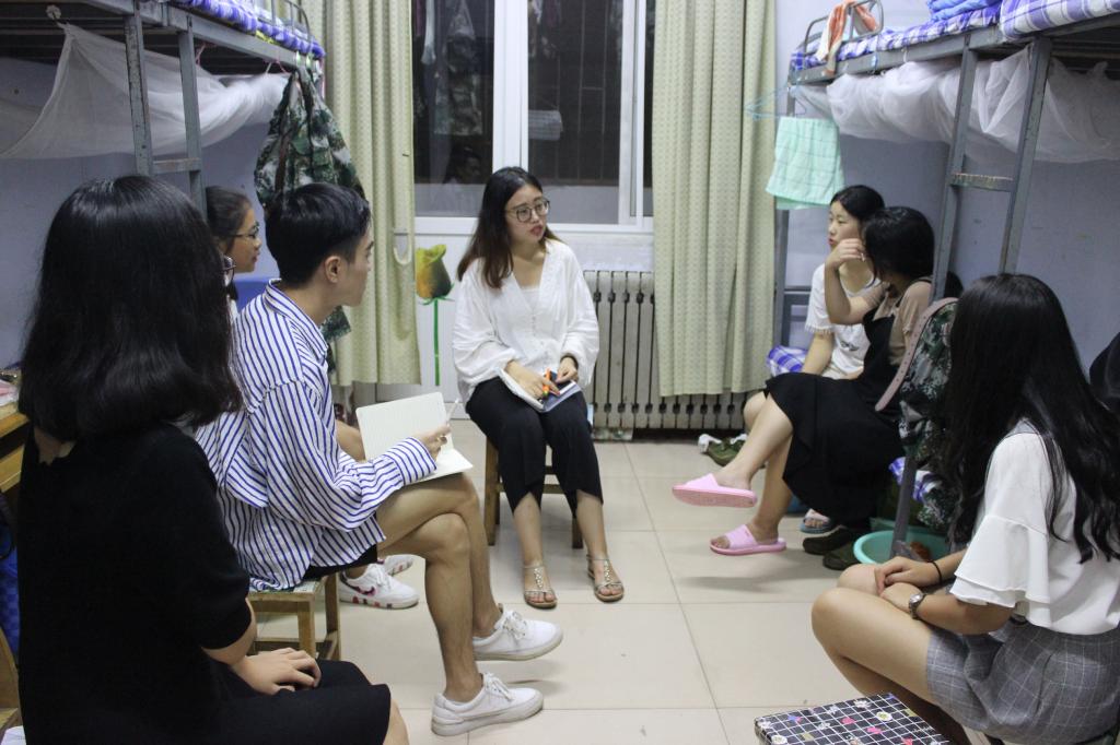 本科生党支部全体学生党员走进大一新生宿舍,就初入大学的心理、学习、生活等问题为新生排忧解难。