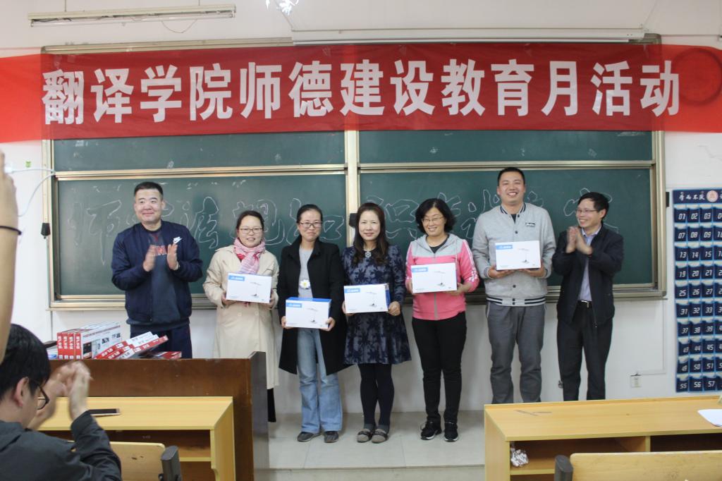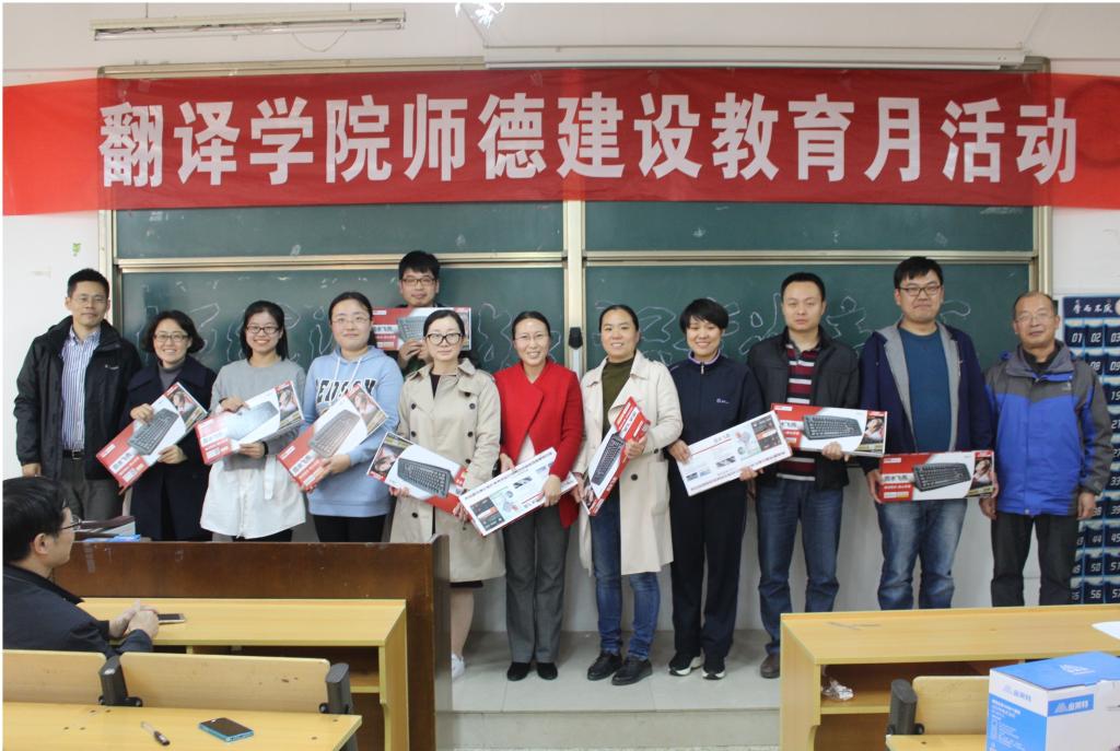 工会主席徐凤副教授介绍了我院师德教育建设月活动概况,表明本次师德法规知识考试竞赛活动的要求,奖项设置,奖品种类,评分标准及评委组成。然后进入书面考试阶段,一个半小时的考试后,老师们中休,评委组织现场阅卷评分,最后公布一等奖5名,二等奖10名,三等奖51名的获奖情况,最后斗地主