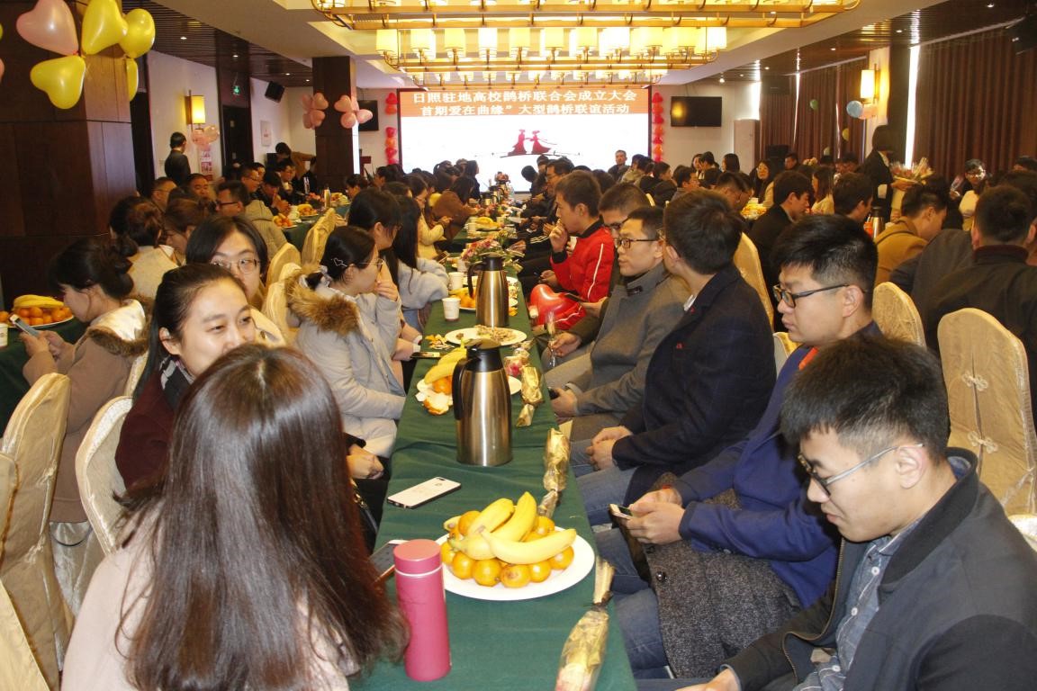 借本次活动之际,学校工会联合日照驻地其他高校工会宣布成立日照驻地高校鹊桥联谊会,宣读了联谊会的章程、性质、宗旨、机构设置及活动原则。我校工会主席王万民当选为会长,我院工会主席徐凤副教授当选为委员。鹊桥联谊会宣布成立之后,进入本次大型鹊桥联谊活动的具体环节,整个活动由我院工会主席徐凤副教授主持,在劲爆的开场舞之后,依次进入“第一印象”、“才艺展示”、“爱情宣言”、“游戏互动”、“男女人气旺评选”等活动环节,在温馨的环境、浪漫的音乐、美丽的鲜花中,漂亮的姑娘和帅气的小伙勇敢大胆地敞开爱的心扉,拉开爱的序幕,踏上爱的旅程、寻找爱的归宿。整个互动活动现场,温馨和谐、热情活力、欢声笑语、处处洋溢着爱恋的气息、充满着爱情的甜蜜。