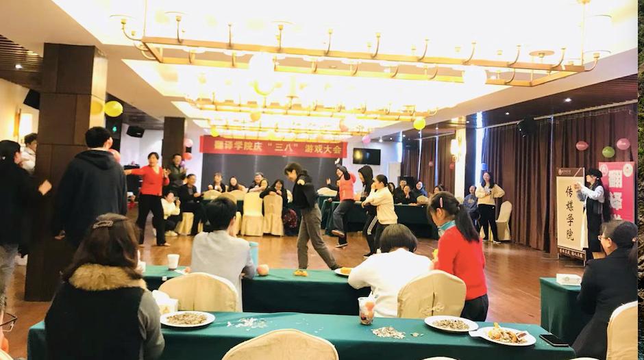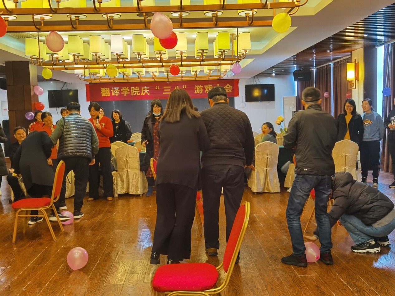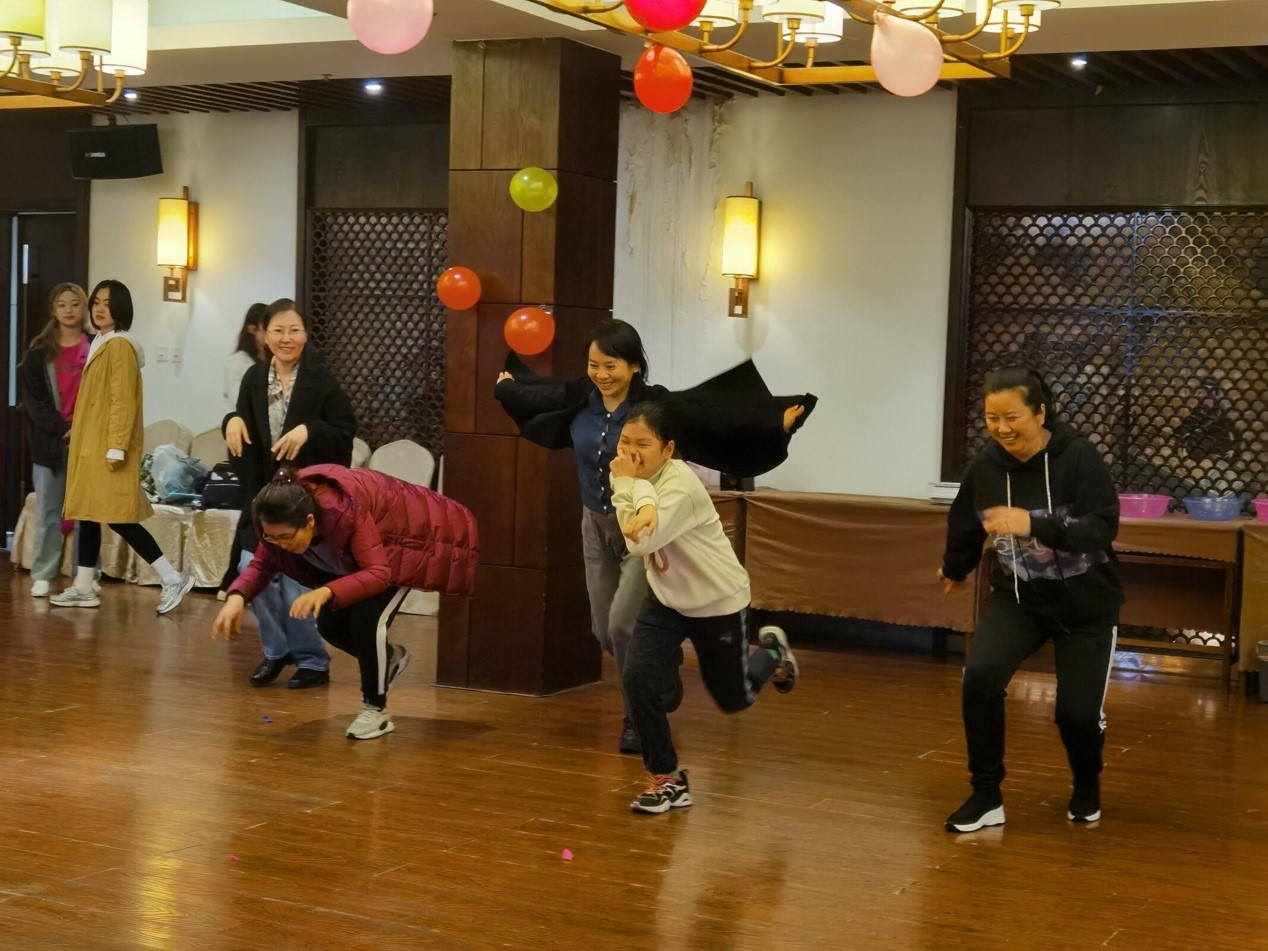 活动伊始,党委书记魏伟对各位教师的到来表示欢迎,对工会的筹备工作表示感谢,并致以节日的问候与祝福。然后,工会主席徐凤宣布游戏环节正式开始。工会按照动静结合、男女搭配、有声无声的顺利精心准备了“瞎子领瘸子”、“箭靶人”、“嘴衔纸片传面粉接力”、“徒手穿短裤”、“闭眼辨队友”、“台词传声筒”、“水盆里吃苹果”、“倒穿雨衣”等15种有趣的游戏。