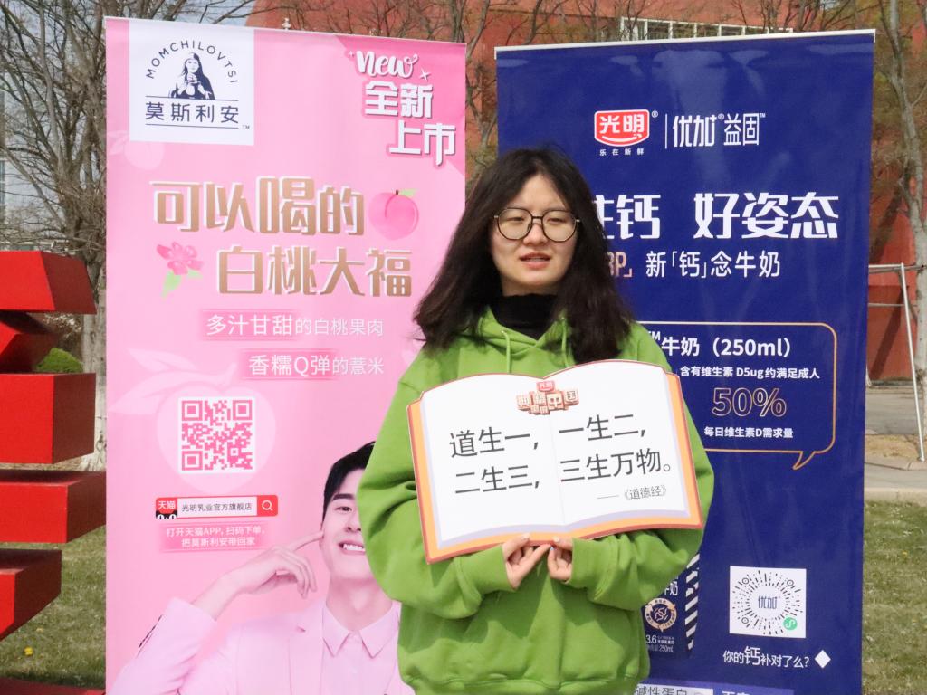 主讲人孙艺方上台进行宣讲。她从参赛对象、参赛项目、参赛方式等各方面介绍了大赛的具体情况及注意事项。同时,她强调本次大赛能对同学们的语言能力和专业素质起到积极的锤炼作用。随后,主讲人回放了历届大赛颁奖典礼的精彩视频,带大家回顾了大赛历史,激励大家积极展示自己的技能和风采,并争取在大赛中获得优异成绩。活动期间,同学们手持传统文化宣传板,在校园的各个角落,用中英双语进行现场短视频拍摄及大赛采访,在展现中国诗词含蓄隽永魅力的同时,也体现了曲园学子学贯中西的文化气质。本次宣传吸引了众多同学的目光,很多围观同学主动来到现场,踊跃报名并领取了精美礼品。活动最后,部分参赛同学代表及全体工作人员集体合影留念。至此,本次“儒易杯”中华文化国际翻译大赛线下推广活动圆满结束。