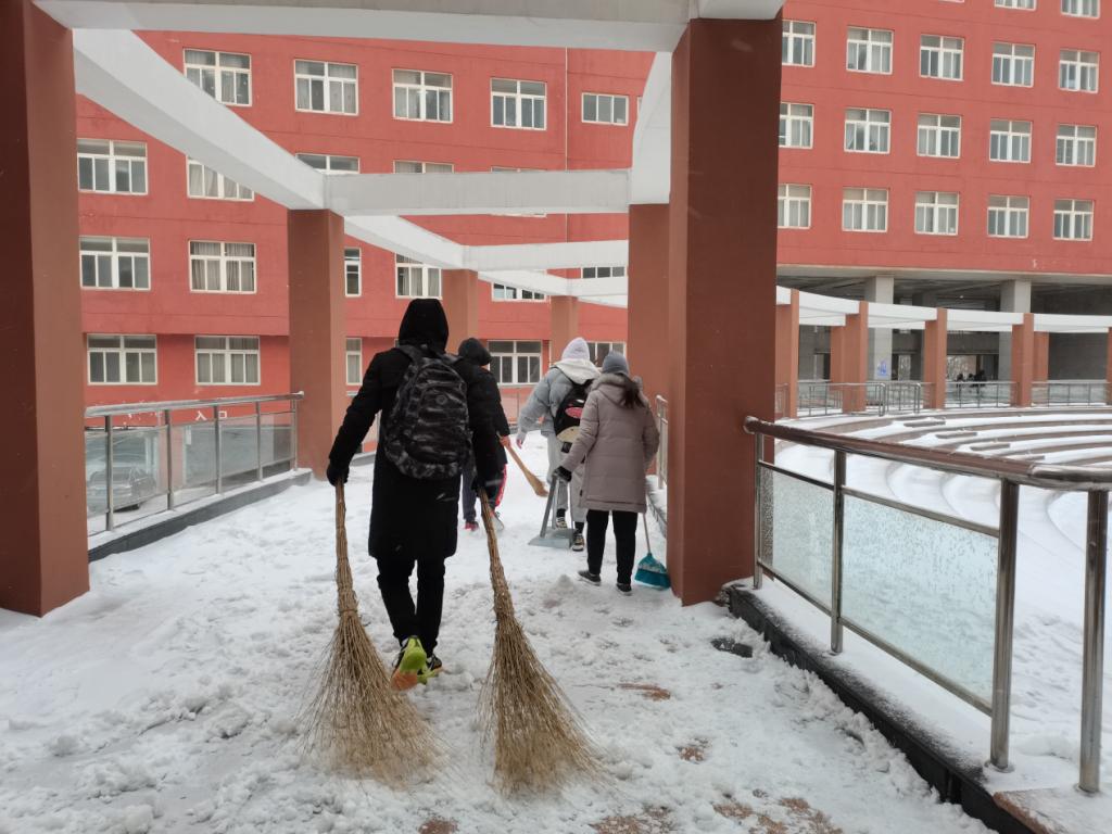 组织党团员、学生干部开展“扫雪除冰当先锋”志愿服务活动。