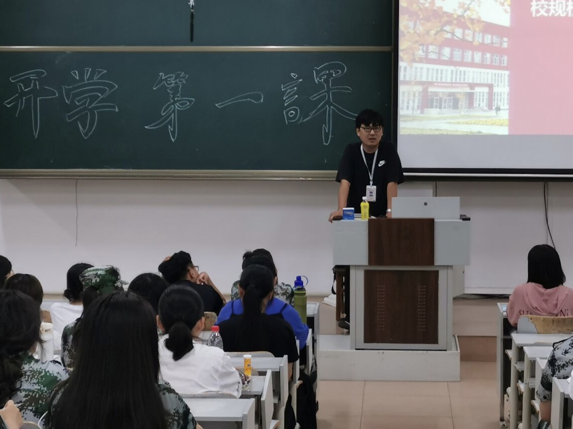 新生开学第一课于A205、A206教室举行。本次活动由2020级辅导员王峰老师主持。