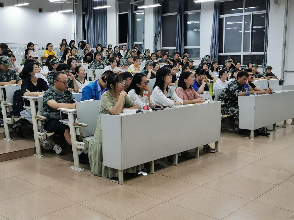 思想政治教育和管理特点,从纪律、生活、全面发展、组织培养四个方面展开论述。他强调进入新的环境要及时调整心态,转变角色,处理好人际关系,尽快投身到新的学习和生活中去。针对大学生规则意识的培养及文明行为的养成,王峰老师详细地讲解了学校的校规校纪,希望新生培养良好的个人习惯,提高自己的文明素养,争做新世纪的“四有”青年。此外,王峰老师以历年来优秀学生事迹为例,激励新生以他们为榜样,奋发图强、勇于争优。