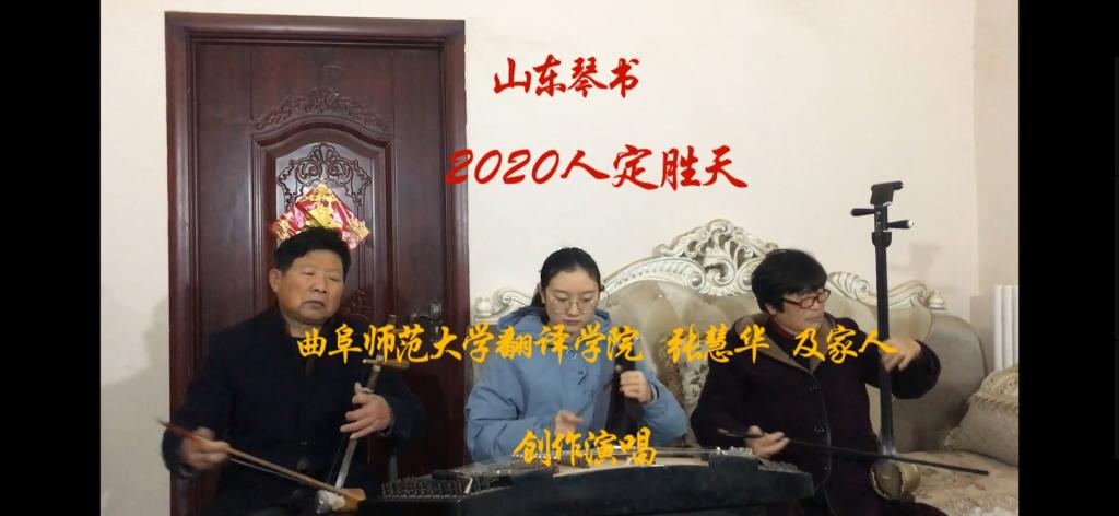 18级商务英语三班张慧华在其母亲山东琴书传承人胡布先的带领下,携家人制作琴书剧段《2020人定胜天》。
