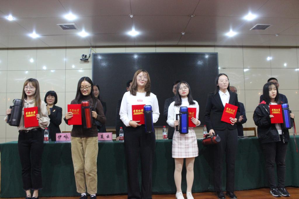 概况、师资队伍、学科建设等情况。教师代表伊咏教授、老生代表张亦弛同学、新生代表褚展言同学先后上台发言,“译之星”表彰、杰师教育”奖学金颁发仪式正式开始。我院一直以来非常重视学风建设和本科生教育质量,积极引导广大同学稳定专业思想,为鼓励同学们敢于冒尖、勇争第一以及全面发展,从今年起我院首次表彰各年级各专业学习成绩第一名和综合测评第一名,并冠以“译之星”荣誉称号。北京杰师教育科技有限公司多年来热心教育事业,十分关心大学生的学业发展,资助我院首次设立的“译之星”奖品,并设立“杰师教育”奖学金,奖励大二年级翻译和商务英语专业的学习成绩优秀者。