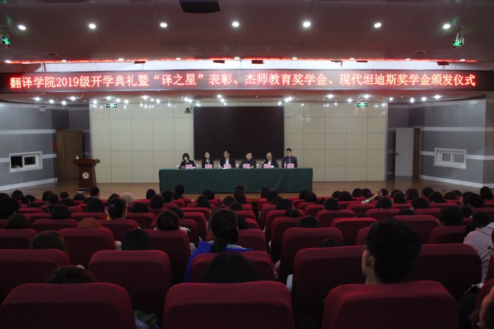 2019级开学典礼暨“译之星”表彰、“杰师教育”奖学金颁发仪式于图书馆报告厅举行,斗地主