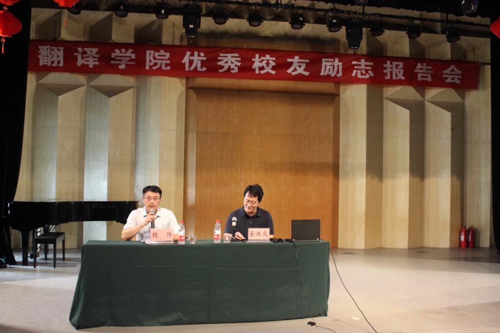 的学习经历。他分享了自己创业创新经过失败而后获得成功的经历,从最初的日语兼职到自主创业,几经辗转,终于在事业上取得了巨大的成功。他呼吁同学们在创业过程中要有坚持不懈的精神,要善于抓住时机、及时止损,要合理发挥自己的个人优势,要创建并充分发挥平台的作用。在最后的提问阶段,董洪庆先生认真详细地解答了同学们提出的学习以及人生规划方面的疑惑。他儒雅坦诚又不乏幽默的话语,博得同学们的阵阵掌声。最后,魏伟书记作总结发言,建议同学们不断学习专业知识,培养综合能力,并勾画了斗地主