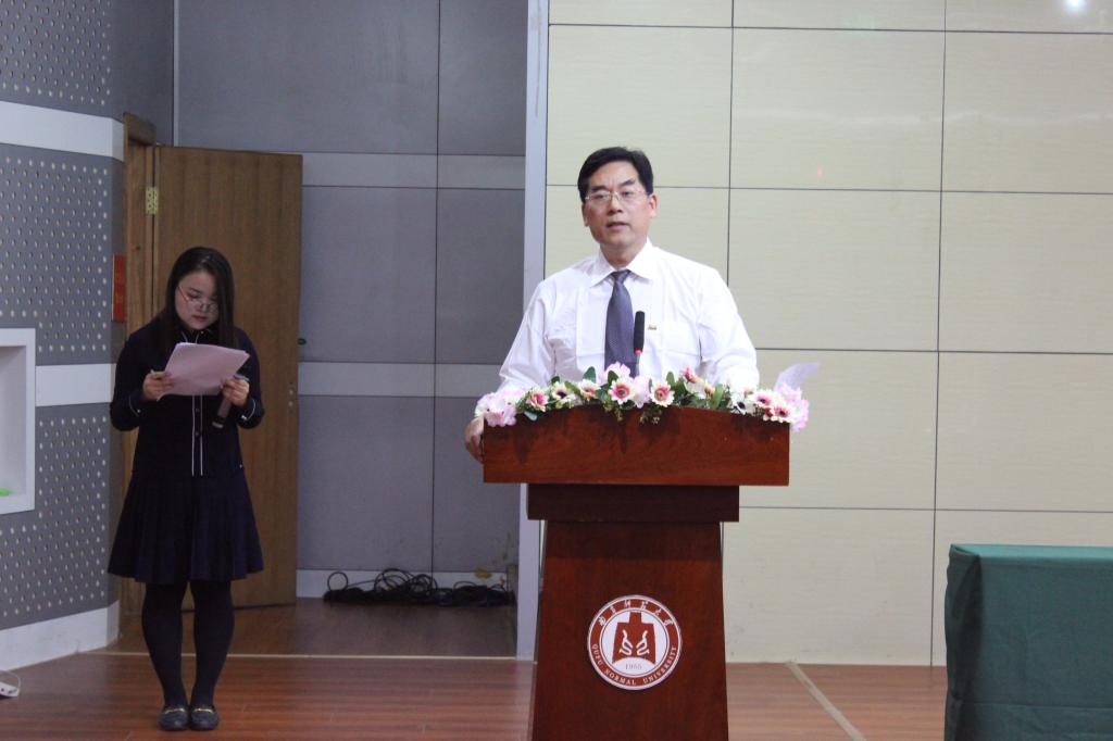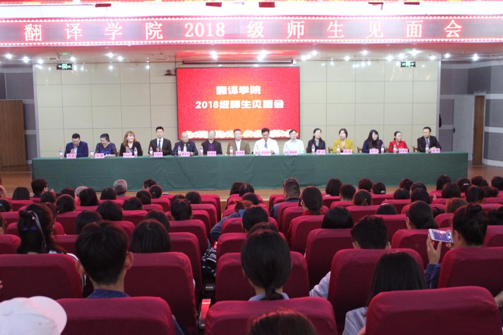 2018级师生见面会于图书馆报告厅举行,院党委书记李金雷、院长卢卫中教授、博士生导师李德高教授、语言与脑科学研究中心主任周统权教授、院党委副书记董家忠、副院长夏云教授、副院长宋晓凯副教授、工会主席徐凤副教授、团委书记岳峰等斗地主