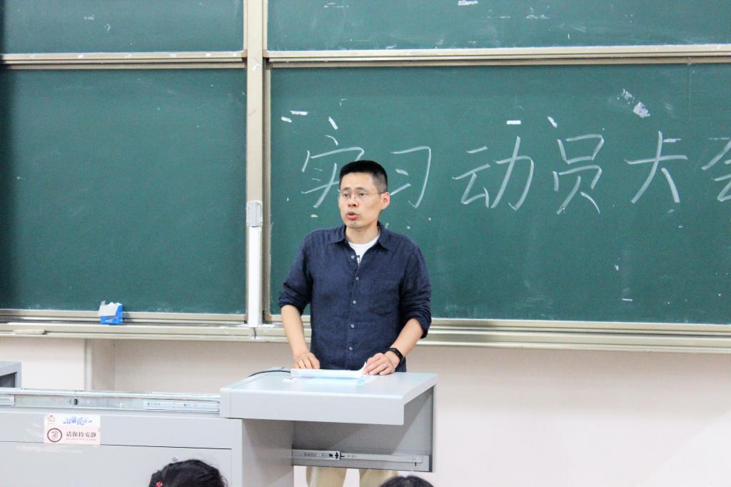党委副书记董家忠讲话,表示本次实习的目的主要为培养同学们的专业素养和实践能力,告诫学生们安全隐患无处不在,应时刻重视安全问题,并提出纪律性是曲园学子不可或缺的品质之一,同学们在实习过程中应做到有组织有纪律,展示曲园学子的行为风范。副院长宋晓凯针对专业实习学分认证、实习差旅报销事项、专业实习分组(集中实习和分散实习)、实习中教师巡视等问题作了说明,并表示希望同学们在实习过程中运用好自己的专业课知识。最后辅导员王峰进对会议进行了细节补充,并祝愿同学们假期愉快、实习顺利。