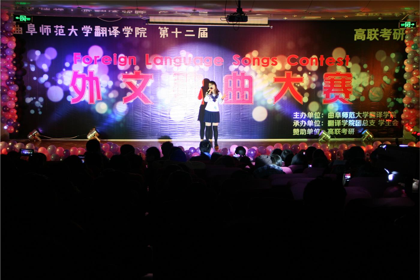 本次外文歌曲大赛不仅丰富了校园文化生活。更为同学们提供了一个发掘潜能、展示自我的舞台。它诠释了青春与理想同行,反应了当代大学生积极向上的精神面貌。魅力外文,畅享音乐,外文歌曲大赛,明年再见!