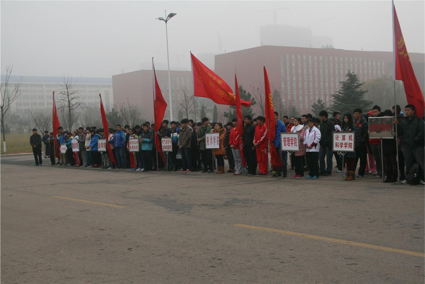 首先,校学生会主席王飞宣读了活动倡议书。随后,孔令军老师为本次接力赛发令,来自12个斗地主