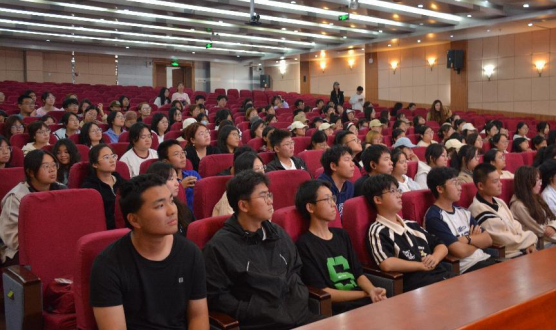 在图书馆报告厅举办创新创业比赛经验分享交流会,本次活动由我院创新创业部副部长刘晋彤主持,2024级全体本科生参会。