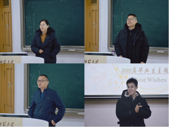 夏云回忆起同学们的大学时光,对大家在学习和生活中取得的进步表示肯定,并送上真挚的祝愿,鼓励同学们勇敢迎接未来的挑战。对于即将到来的全国硕士研究生招生考试,宋晓凯为考研学生提供心理疏导,分享了考试的各项注意事项,他谈到,考研就像马拉松,目前已进入冲刺阶段,大家应按照既定节奏,稳扎稳打,用最佳状态与最稳定的心态成就最好的自己。张涛向大家展示历年考研学子的优异成绩,为同学们打下一支“强心剂”,鼓励大家坚定全力以赴冲刺的决心。