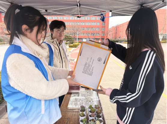 活动过程中,参与者们聚集在文泽园东南门环保回收点,利用废纸壳、塑料瓶等生活废品,兑换小巧精致的多肉盆栽。我院工作人员秉持认真负责的态度,详细讲解活动的兑换规则,并有条不紊地引导参与者依次兑换。