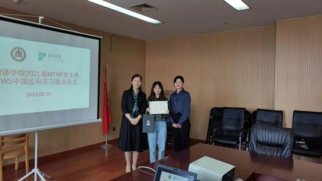 2021届MTI研究生赴RWS(中国)公司实习结业仪式在JC801会议室举行。RWS中国公司副总经理、日照分公司总经理郑金凤,高级项目经理姜宁,财务经理、校企直通163项目负责人朱芳,日照分公司HR李捷,斗地主