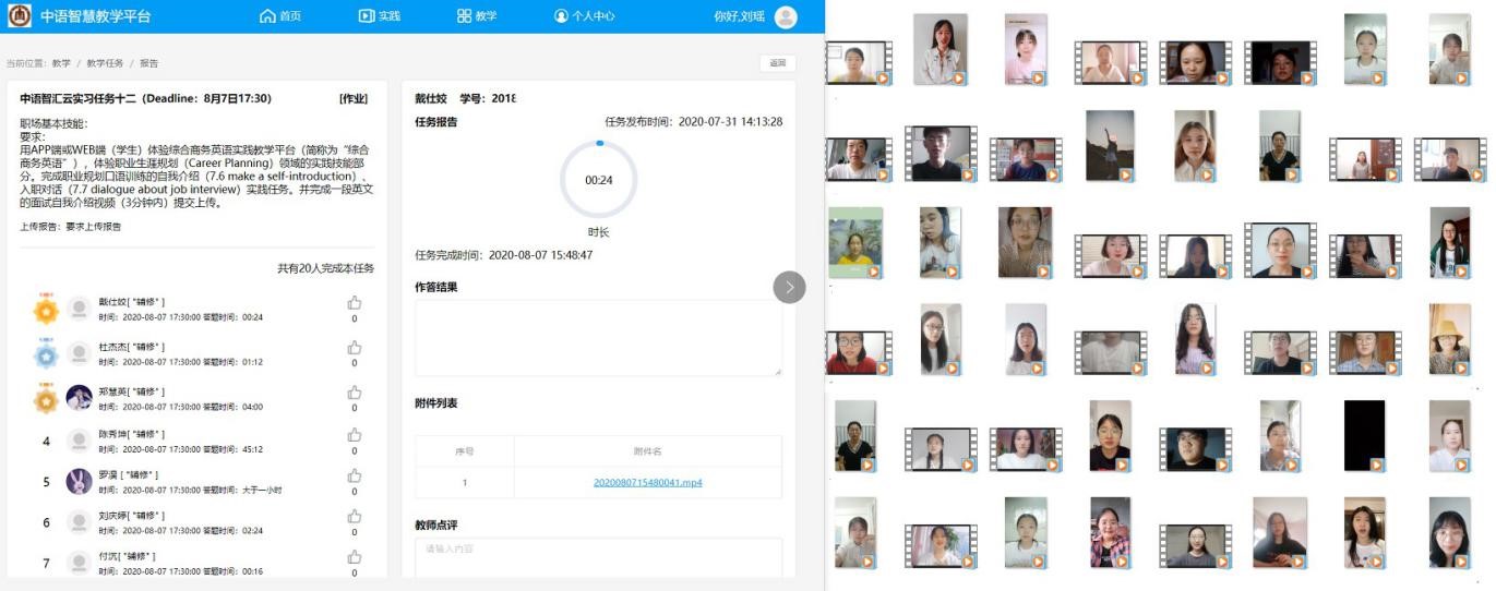(学生完成录制自我介绍视频的实习任务)