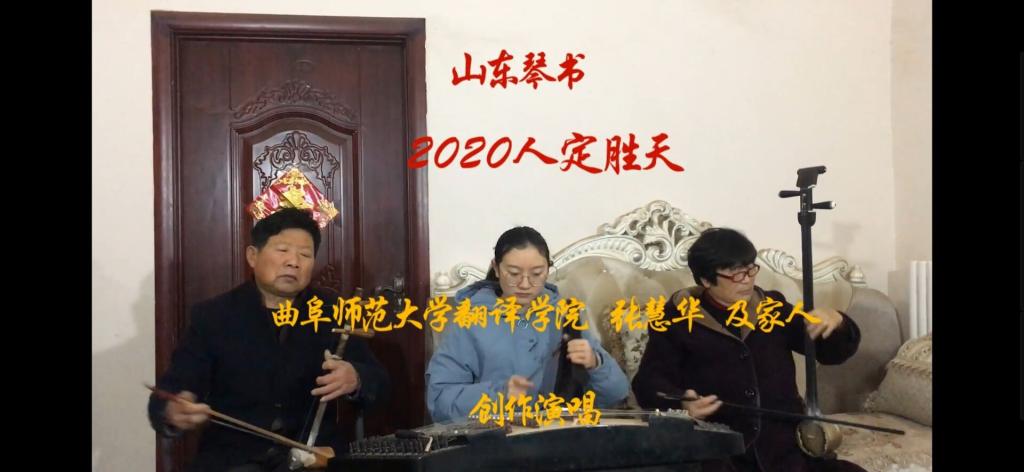18级商务英语三班张慧华在其母亲山东琴书传承人胡布先的带领下,携家人制作琴书剧段《2020人定胜天》。