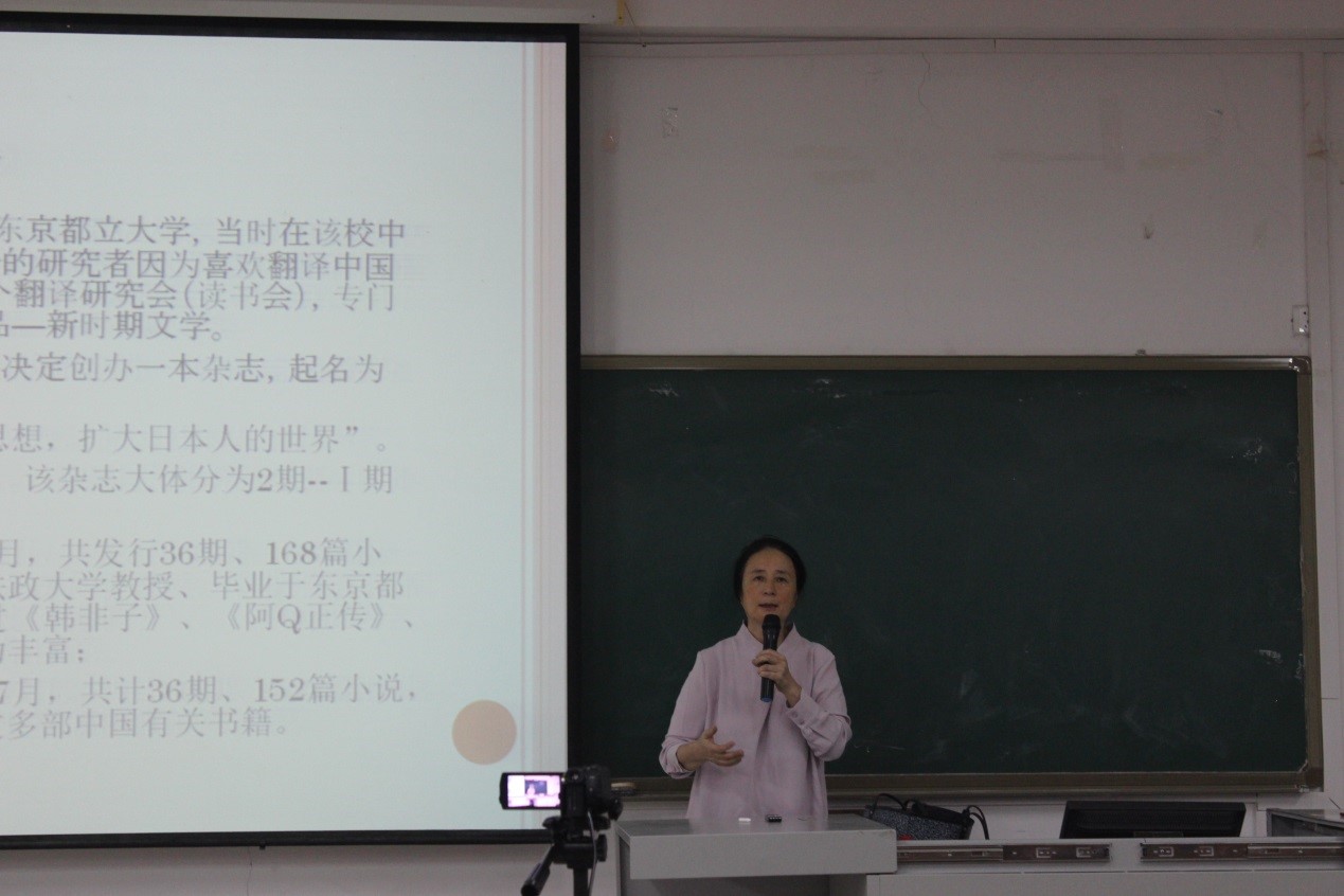 首场学术报告主题为“《季刊•中国现代小说》对中国当代文学的译介”,报告由日语系主任邵艳平副教授主持,日语系侯冬梅、杜艳、高远等教师和外教潮田央以及全体本科生、研究生聆听了讲座。
