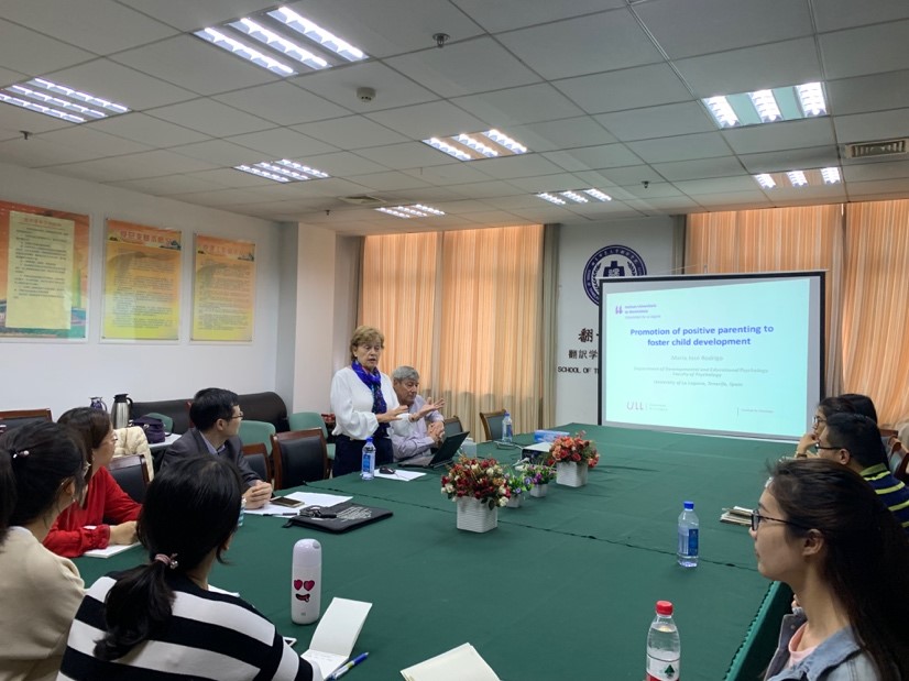下午3:00,María José Rodrigo教授为大家分享了主题为“Promotion of positive parenting to foster child development”的讲座,从家庭多样性(10种家庭的组合形式)、积极的育儿定义、欧洲委员会的建议、国家和地方两级的家庭政策等方面展示了西班牙在促进儿童发展和幸福方面所做的努力、所开展的育儿项目以及所取得的成果,并结合具体个案介绍了促进儿童健康成长的很多具体策略和解决方案,使师生们认识到社区、学校和地方卫生服务部门为孩子、孩子父母提供支持的重要性以及对儿童全面发展的重大意义。