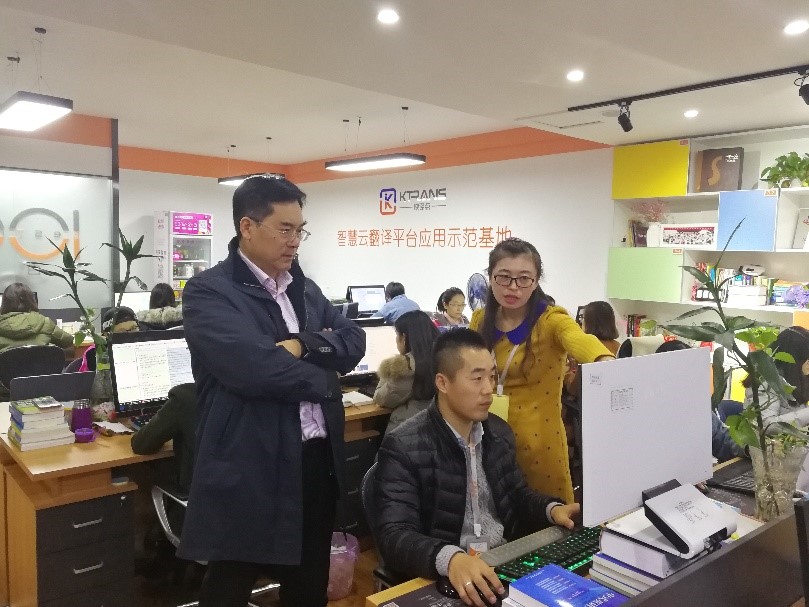 11月23日,卢卫中院长应邀先后到山东双泽信息技术有限公司和山东译传世嘉翻译有限公司参观考察,并分别与两公司负责人进行了合作洽谈。我校翻译专业学位研究生教育中心副主任兼我院MTI教育中心主任许家绍副教授一同参加了相关活动。