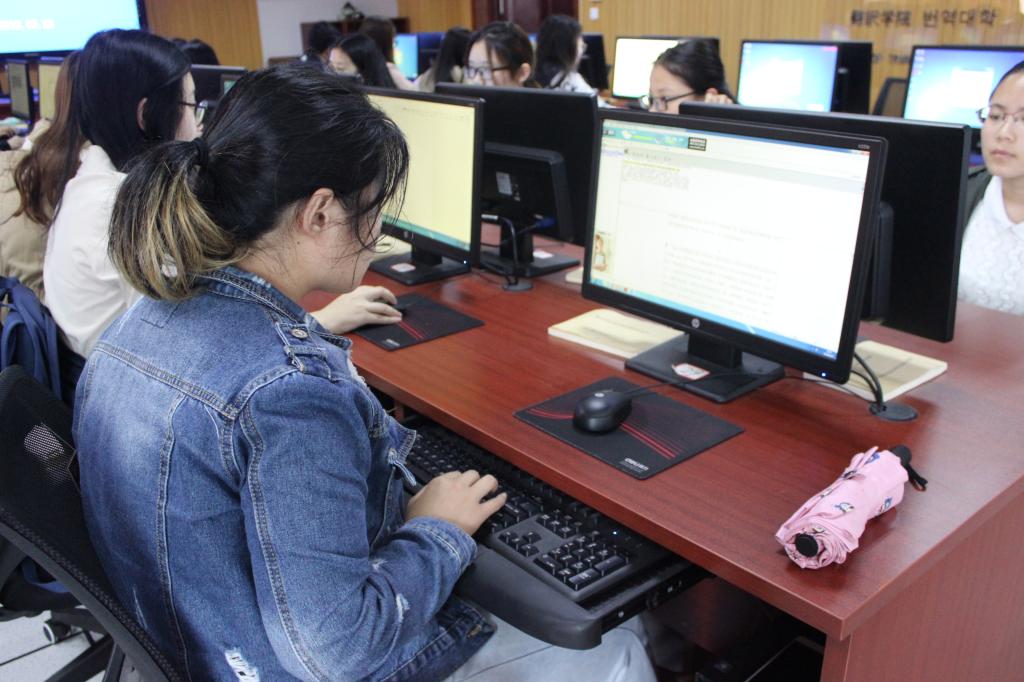 计算机辅助翻译与翻译项目管理大赛初赛在计算机辅助翻译实验室 (JC1003)顺利举行。本次比赛由厉平、许家绍、黄美娜、郑阳、陈慧和顾伟老师担任评委。比赛重点考察了翻译技术中常用的OCR识别、文本编辑、术语库创建,CAT工具使用等方面的技能。2015级翻译专业近百名本科生参加了此次初赛。