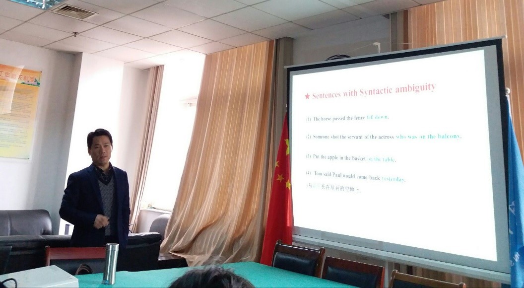 专题讲座伊始,何老师首先简单介绍了人类语言认知机制的普适性与特异性,其中包括歧义句与关系从句。之后详细介绍了英语中的主、宾关系从句及其句法结构,主要包括四个理论:“填充语—空位”依附理论、句法角色—视角转换理论、语言经验(分布规律)理论以及题元切适性理论,并由此延伸到汉语的主、宾关系从句及其句法结构,引出自己的实验研究。现概述如下:研究一,汉语主、宾关系从句认知难度的研究——基于年龄效应的考察;研究二,汉语主、宾关系从句认知难度的研究——基于核心名词生命性效应的考察;研究三,汉语关系从句依附歧义消解影响因素的研究。何老师详细介绍了基于上述三个研究的8个实验及其实验原理实验步骤及实验结论等,并且提出一系列仍待研究的问题。整个讲座过程中,何老师用生动鲜活的举例及深入浅出的讲解,让在座的老师同学们获益匪浅。讲座即将结束之际,何老师认真回答了老师和同学们提出的问题,并就几个问题进行了深入讨论,大家各抒己见,取长补短,801会议室里一派百家争鸣的学术气象。