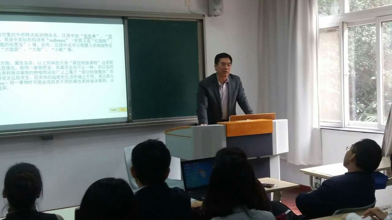 我院卢卫中教授、张涛博士以及徐云秋、管琳两位研究生应邀参加了此次研讨会。卢卫中教授出席了会前举行的中国认知语言学研究会常务理事会,并在“转喻研究”专题会场宣读了以“英汉转喻构词理据对比研究”为主题的论文,以其独到的见解、严密的逻辑与翔实的例证赢得了在场学者们的热情赞许。徐云秋在“翻译与认知研究”专题会场宣读了以“从概念整合视角探析成语英译策略——以反义共现成语为例”为题的论文,管琳在“认知视角下的词汇研究”专题会场宣读了以“汉语‘雨’隐喻的认知研究”为主题的论文,均获得在场专家的认可和精妙点评。参加此次会议的还有卢卫中教授指导过的两位往届硕士研究生——毕业于上海外国语大学的李克博士和北京外国语大学在读博士生刘庚,两位博士分别在专题会场做了精彩的发言。前辈与后生同台演讲,竞相发言,充分展示了我院师生的学术风采,体现了语言学界生生不息的学术传承。