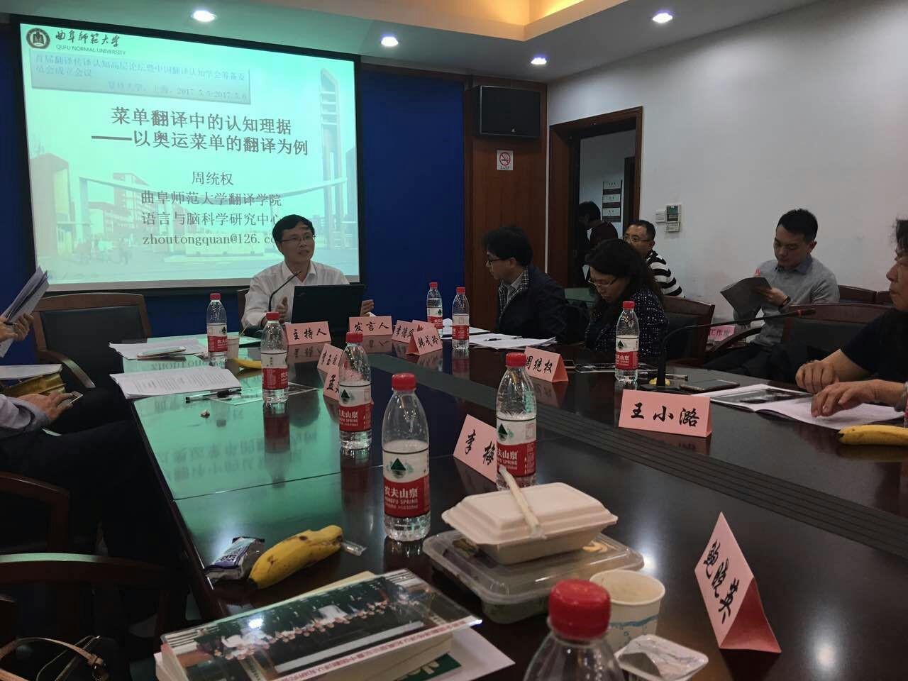 5月6日,首届全国翻译传译认知高层论坛暨中国翻译认知研究会委员会成立大会在上海复旦大学外文斗地主 召开,来自全国部分高校和研究院的专家和学者20多人共同探讨了中国文化“走出去”和“一带一路”倡议下中国翻译、传译、认知等领域理论与实践的最新国内外研究成果和前沿展望。我院的周统权教授应邀出席会议并当选为“中国翻译认知研究会常务理事”,他的会议报告“菜单翻译中的认知理据:以奥运菜单的翻译为例”引起了与会者的热烈讨论,展示了斗地主 翻译人的风采。