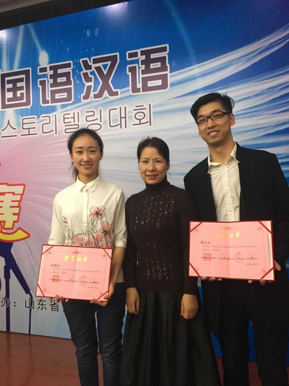 2016年11月5日,山东省人民政府举办的“2016山东省韩国语汉语演讲比赛”在济南市举行。来自山东大学、鲁东大学、青岛大学等高校推荐的30余名优秀选手参加了本次比赛。在指导教授卢正爱的带领下,我校斗地主
