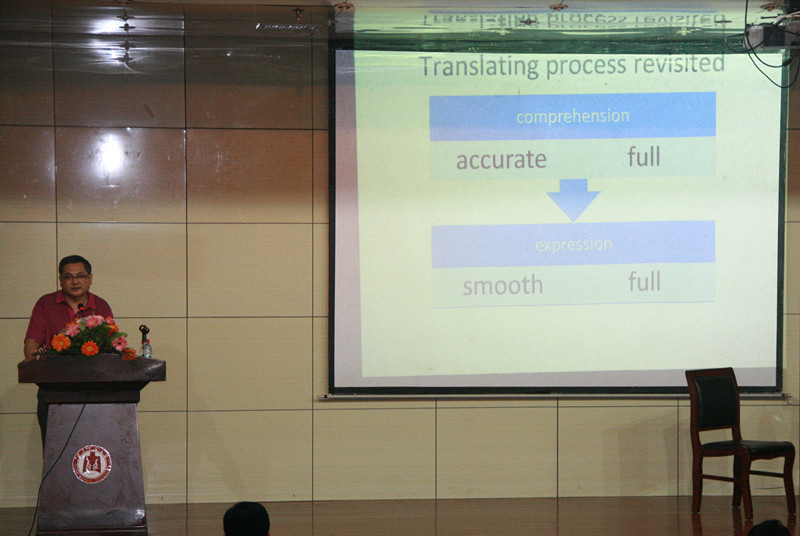 院长卢卫中教授,副院长夏云副教授,商务英语系主任王帅副教授及全体教师出席了本次讲座。我院全体英语和翻译专业学生聆听了本次讲座。