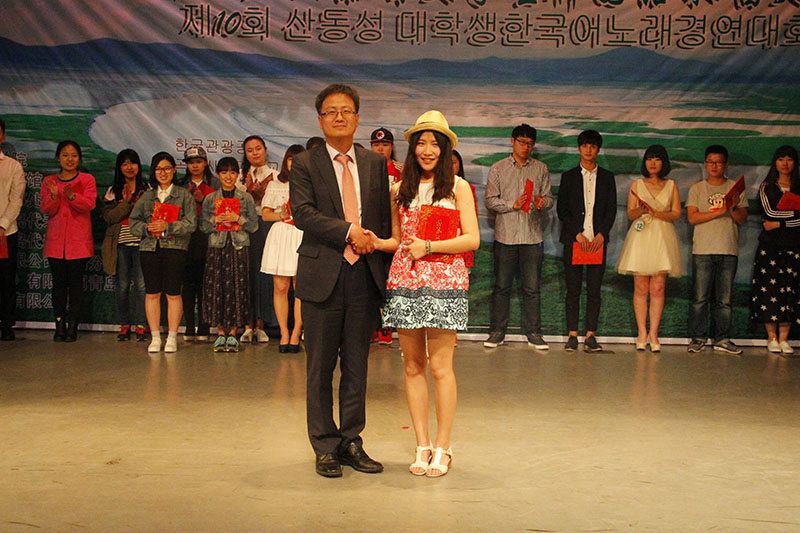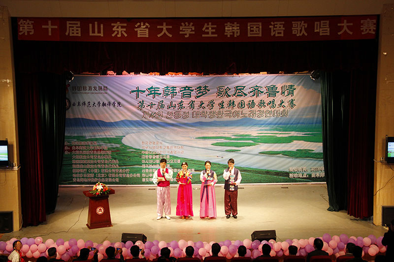 TOUR旅游社,新韩银行及青岛海地村我家食品有限公司协办的“十年韩音梦,歌尽齐鲁情”第十届山东省大学生韩语歌曲大赛在我校日照校区拉开帷幕。大韩民