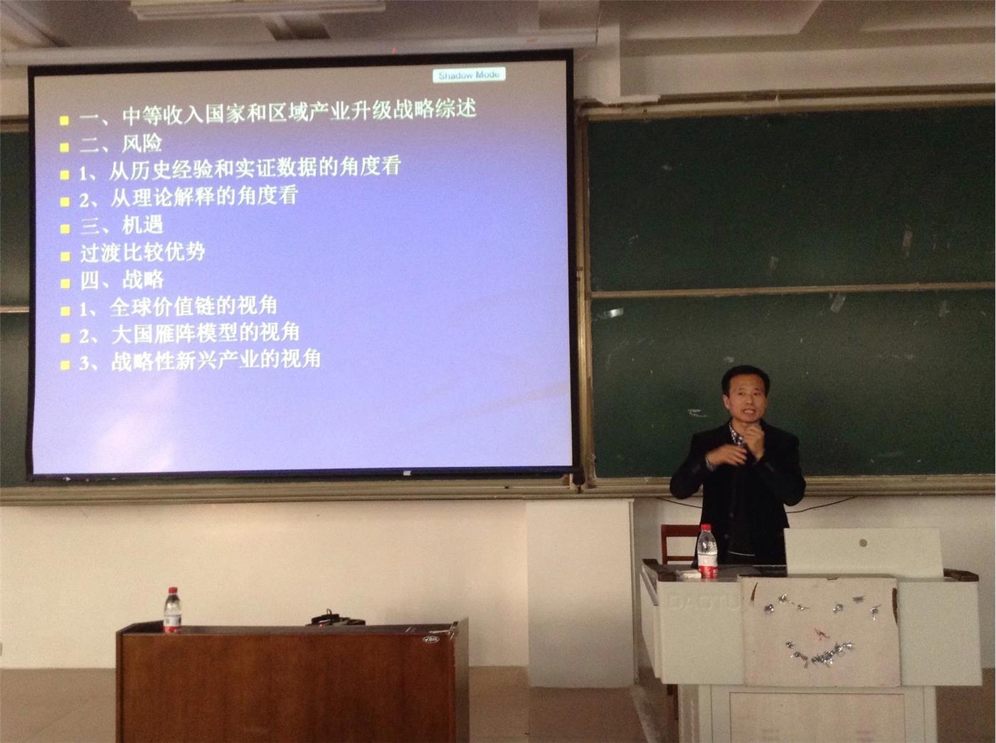 讲座伊始,副院长夏云向与会师生介绍了杜曙光教授。随后杜教授讲从一张关于中美经济发展预期的图表入手,开始了本次讲座。讲座过程中,杜教授借由一个“空‘芯’之忧”的新闻,揭示出中国的经济发展在关键技术的环节上对外依赖程度过高的现状。借此例引出了“中等收入陷阱”和“全球价值产业链”的概念,综述了国内外关于中等收入陷阱的研究现状,分析了某些国家陷入中等收入陷阱的原因,如经济增长过度依赖外部力量,同时又面临着“比较优势断档风险”等。杜教授从风险、机遇和战略等维度论述了“中等收入国家和区域的产业升级战略”,从全球价值链视角、大国雁阵视角及战略性新兴产业等维度提出了可行性战略。最后,王帅老师主持了问答环节,同学们围绕讲座中出现的理论和概念积极提问,杜教授耐心详细地解答了同学们的问题。王帅对本次讲座进行了总结,讲座在一片掌声中圆满落幕。