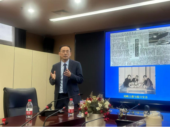 ,作了题为“麦克阿瑟的靴子——战后初期战争责任追究风潮中的尾崎士郎”的精彩讲座。讲座由徐凤教授主持,全体日语系教师和部分研究生参加。
