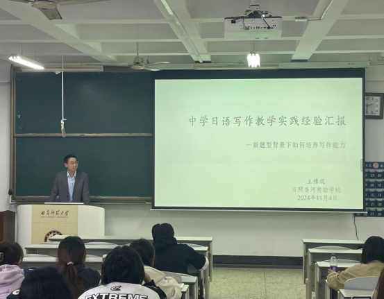 邀请日照香河实验学校王豫琨老师来校分享教学经验。讲座由日语系刘珊博士主持,2022级日语师范生全员参加。