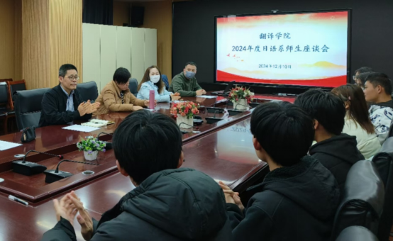 12月10日下午,日语系师生座谈会在801会议室顺利举行。会议由系主任高远老师主持,副院长宋晓凯教授、徐凤教授、杜艳老师等任课教师及2023、2024级学生代表参加。