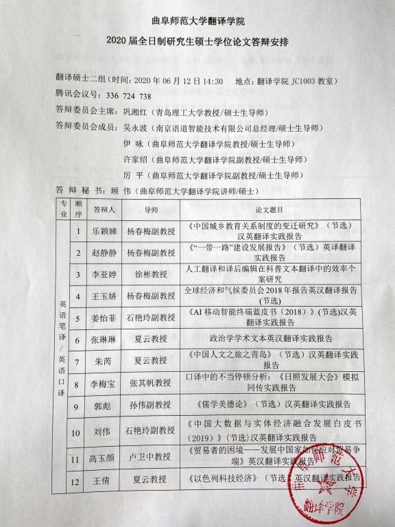 斗地主 2020届全日制研究生硕士学位论文答辩安排1