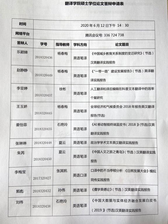 斗地主 2020届全日制研究生硕士学位论文答辩安排2