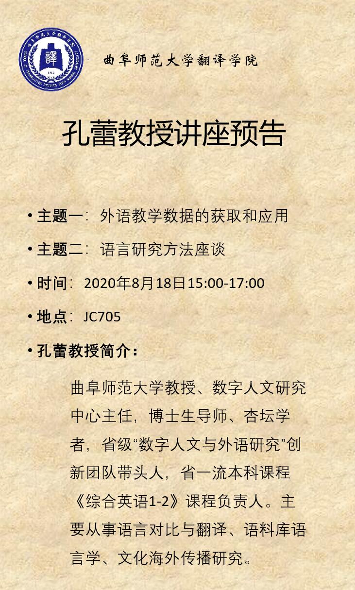 孔蕾教授讲座预告